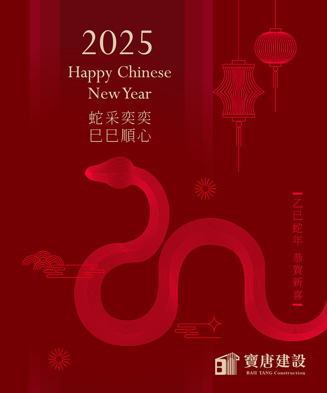 祝福大家 神采奕奕、事事順心 蛇年行大運 Happy Chinese New Year 全新里程、全心啟動 2025乙巳年敬請期待 #寶唐建設 #匠心築居 #人本適所 #一起相信更美好未來 #BelieveTogether #BetterTomorrow